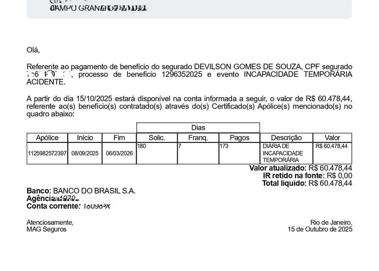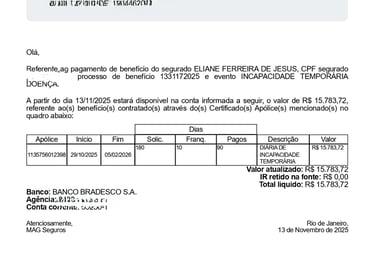 Cartas de Benefícios Pagos