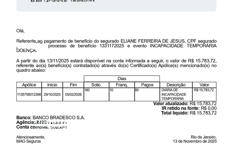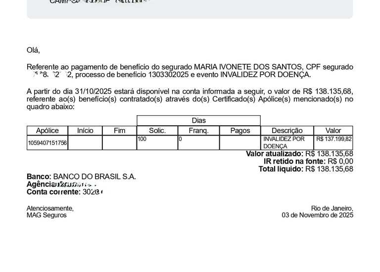 Pagamento Invalidez por Doença